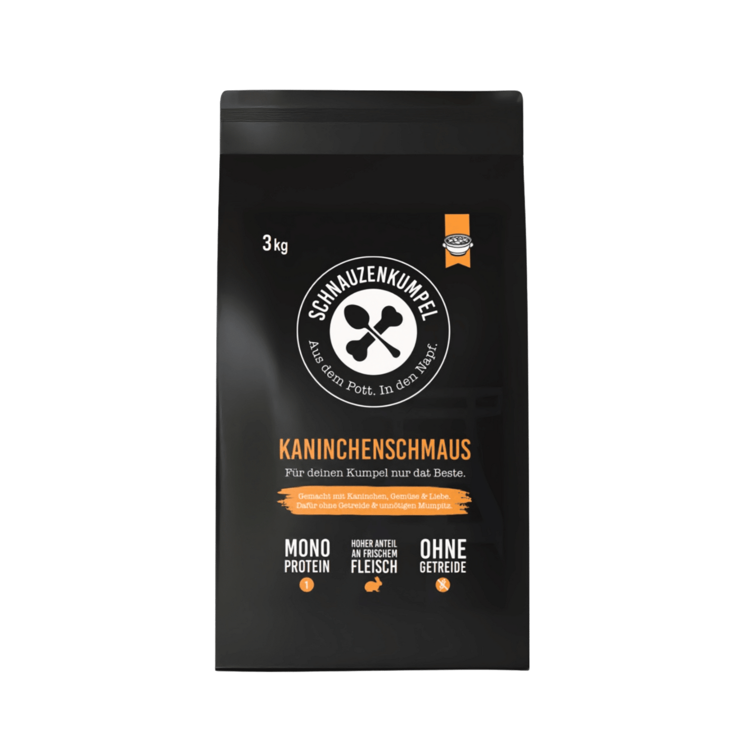 Der Schnauzenkumpel Kaninchenschmaus enthält 42,5 % frisches Kaninchen, was ihn besonders schmackhaft und gut verträglich macht. Die Zutatenliste ist kurz und prägnant – ganz wie du es von uns gewohnt bist. Selbstverständlich deckt unser Trockenfutter alle Nährstoffbedürfnisse deines Hundes ab. Es ist ein vollwertiges Alleinfuttermittel und enthält alle wichtigen Vitamine und Mineralstoffe, die für eine ausgewogene Ernährung nötig sind.