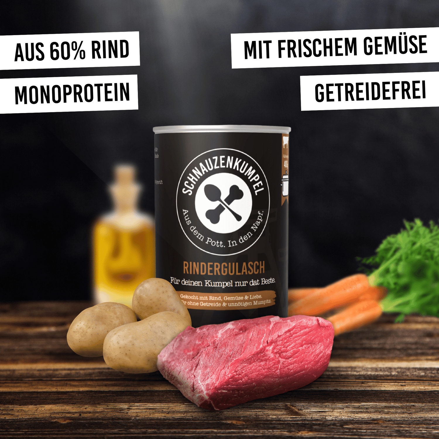 Diese Mahlzeit weckt wirklich Erinnerungen! Sie schmeckt wie damals bei den Großeltern – nur jetzt eben für deinen Hund. Unser Rindergulasch enthält 60 % hochwertiges Fleisch und wird mit regionalem Gemüse wie Kartoffeln und Karotten zubereitet. Eine Prise Liebe dazu, und schon ist unser Gulasch für deinen Vierbeiner fertig.